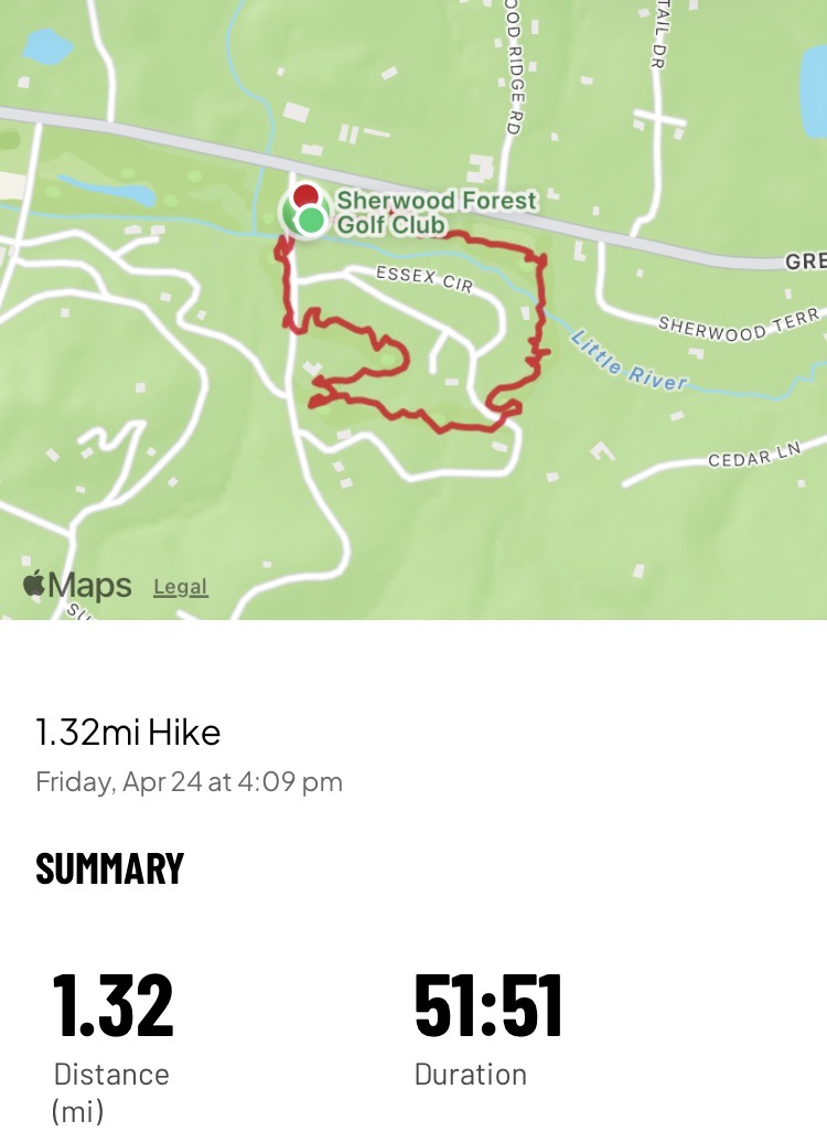 We walked the back 9 holes. It ended up being 1.32 miles. I was looking for lost balls so I may have added a little bit of distance. I am working on building bone density so I wore an 8 pound weighted vest. I was ready to take it off after the walk. It is comfortable for the most part though.